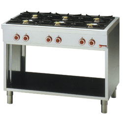Fourneau avec 6 feux vifs, sur armoire ouverte Base 650